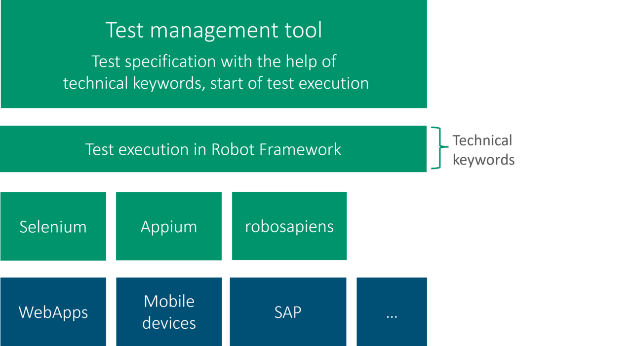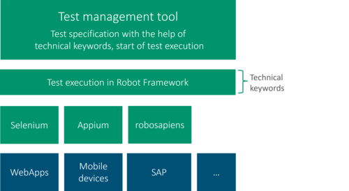 robosapiens is based on Robot Framework and enables its use in the SAP environment. Cross-application test cases can be automated without media breaks and the advantages of the Robot Framework can be used.